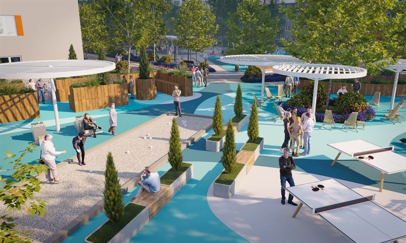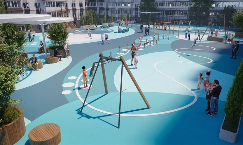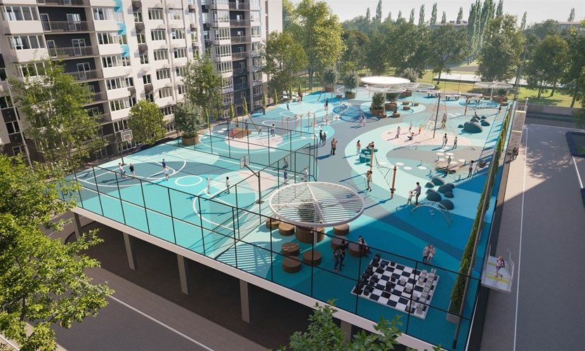 Современные спортивные площадки, двор формата активи - парк с тренажерами т стадионами