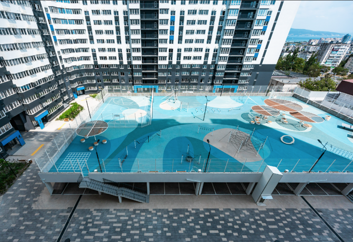 СОВРЕМЕННЫЕ ДЕТСКИЕ И СПОРТИВНЫЕ ПЛОЩАДКИ НА ТЕРРИТОРИИ, ПОДЗЕМНЫЙ И НАЗЕМНЫЕ ПАРКОВКИ