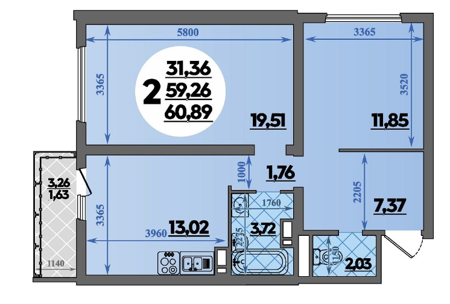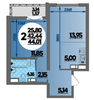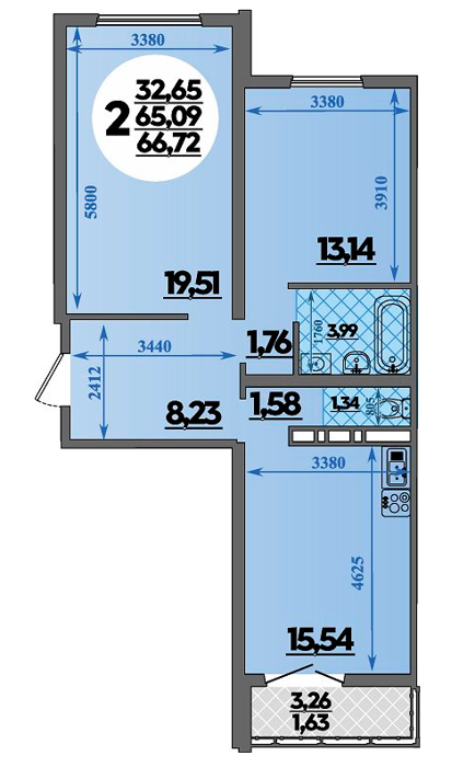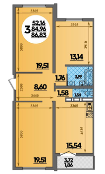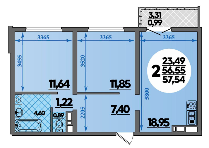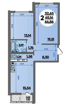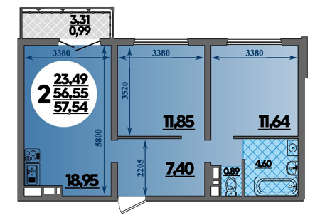 Площадь от 57.54 м2