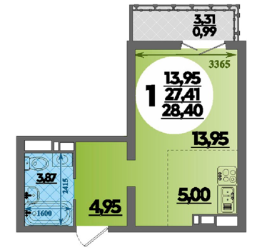 Площадь от 27 м2