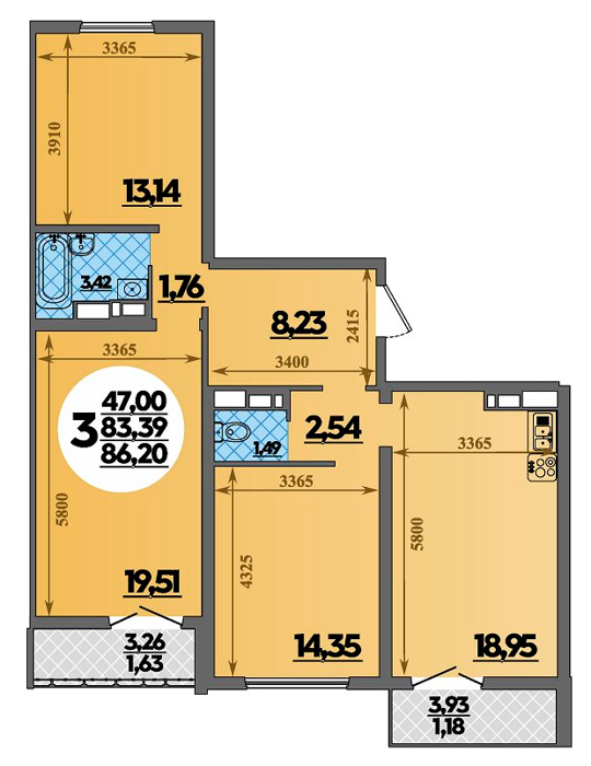 Площадь от 86.2 м2
